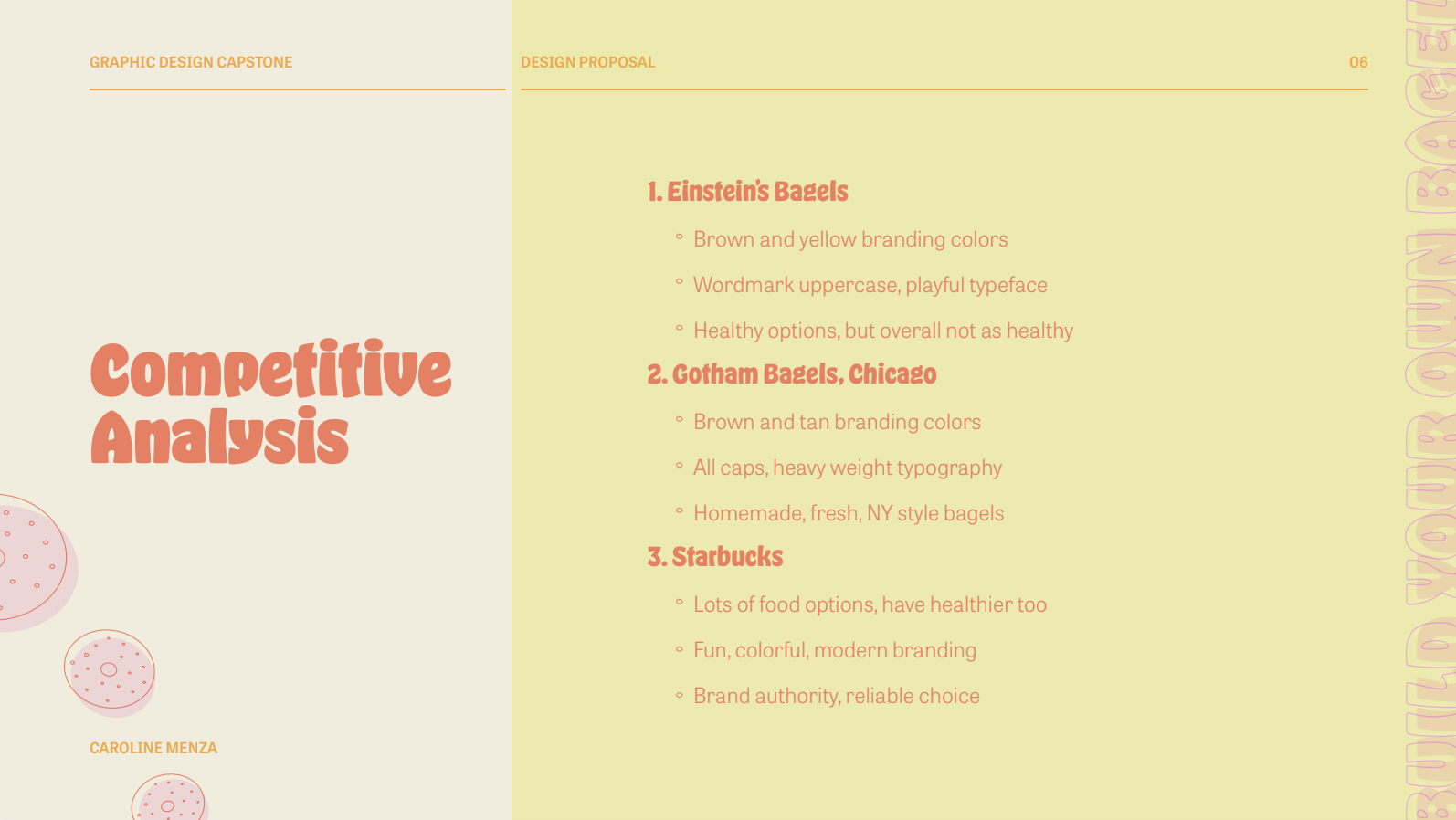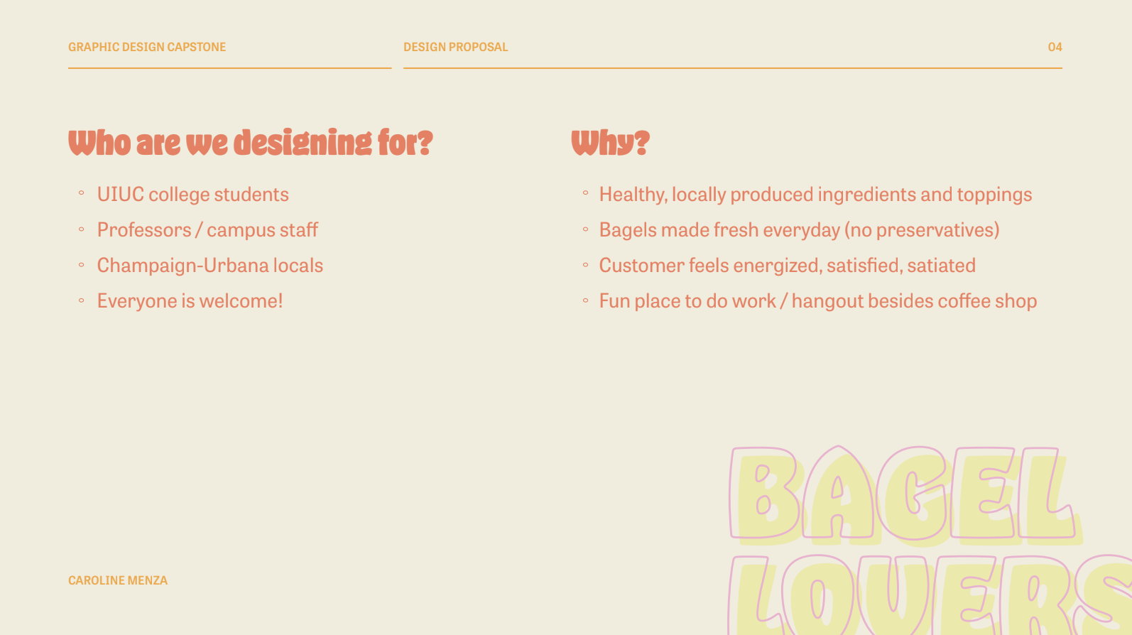 At the start of the branding process, I focused on defining a clear vision and core values to capture what makes this bagel shop unique. Inspired by a commitment to health, sustainability, and community, this vision became the guiding force behind every element of the brand identity.